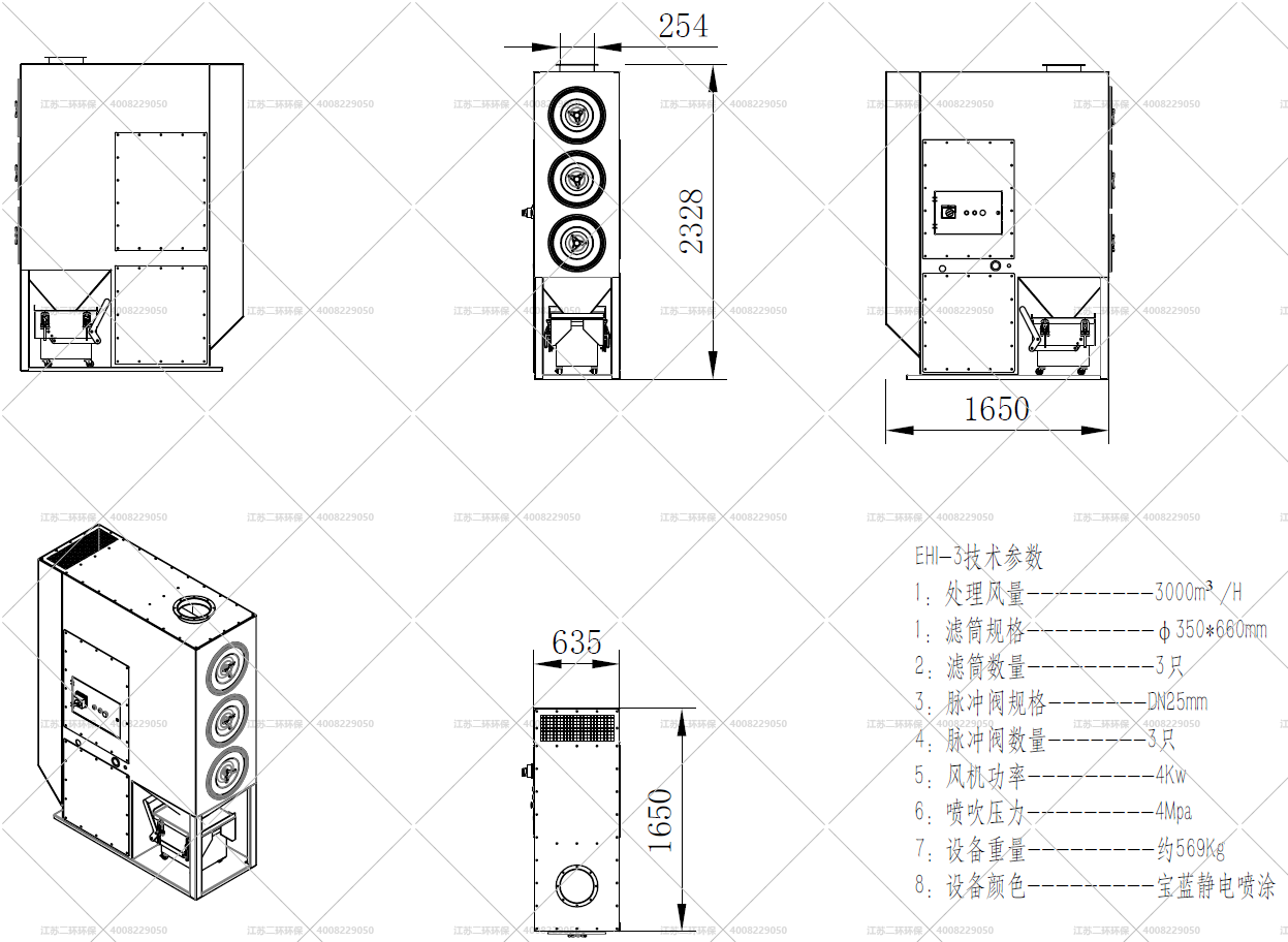 EHI-4N型激光切割滤筒除尘器技术图(下图)